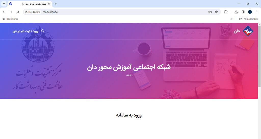 بعد از ورود به شبکه اجتماعی آموزش محور دان، نام کاربری و رمز خود را در بخش”ورود به سامانه” با اعداد لاتین وارد می کنید (نام کاربری و رمز عبور در زمان احراز هویت الکترونیکی، در اختیار هر فرد قرار خواهد گرفت) و سپس روی دکمه” ورود به سایت” کلیک کنید.