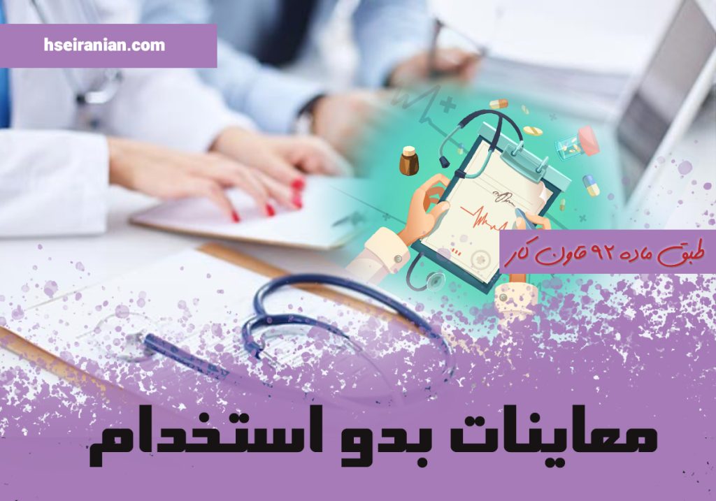 آزمایش بدو استخدام مطابق با قوانون کار (ماده ۹۲) و سلامت کارکنان کشور باید صورت گیرد و نباید از آن چشم پوشی شود. درصورت نادیده گرفتن این موضوع، احتمال اینکه مشکلات بسیاری برای کارگر و کارفرما در طول همکاری در مجموعه رخ دهد بسیار زیاد است.